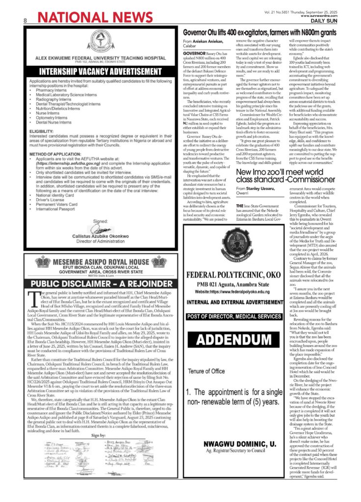 INTERNAL AND EXTERNAL ADVERTISEMENT – POST OF DIRECTOR, MEDICAL SERVICES (ADDENDUM) Post author:Samuel Onwuchekwa Post published:September 29, 2025 Post category:Uncategorized You Might Also Like RECTOR , DR. AWUZIE CONCLUDES HER FIRST 100 DAYS IN OFFICE CELEBRATION WITH SPECIAL THANKSGIVING MASS June 11, 2025 MOMENT OF GRIEF FOR THE POLYTECHNIC September 29, 2025 IT Policy March 1, 2025